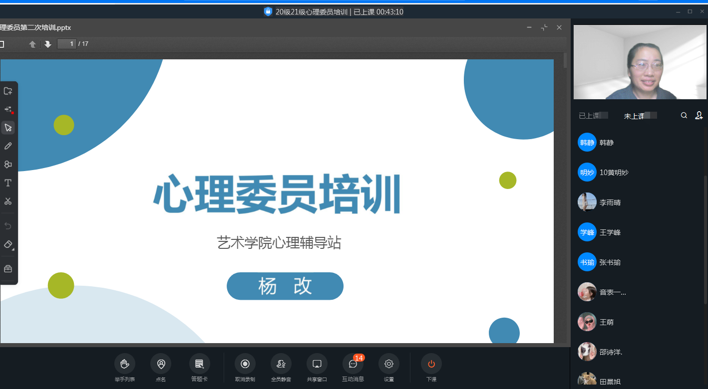 为了进一步明确心理委员的工作职责、增强心理工作中的责任感,2022年5月18日18:10-18:55,ylzzcom永利总站线路检测通过钉钉举行了本学期第二次心理委员培训会本次培训由ylzzcom永利总站线路检测心理辅导站指导老师杨改主讲,20级和21级班级心理委员参加了此次培训。