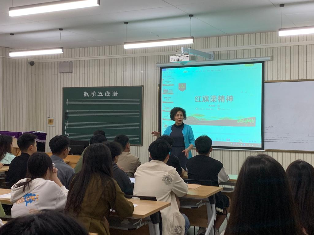 课堂上,吴院长先带领大家回溯历史,铭记英雄,中国共产党成立至今,从腥风血雨、战火纷飞的峥嵘岁月;到波澜壮阔、生机勃勃的改革年代;再到承前启后、继往开来的新时代,无一不体现出中国共产党人浓烈而厚重的奋斗精神。而后向学生们讲解了红旗渠的故事,20世纪60年代,自然环境恶劣,技术水平落后,就是在这样艰苦的环境下,林县人民依然用自己的智慧和双手,穿越太行山的悬崖绝壁,以无畏的精神和卓越的胆识,震撼太行,感召岁月。红旗渠的建设不仅为林县人民带来了生活的希望,也用实际行动为我们讲述了自力更生、艰苦创业、团结协作、无私奉献的红旗渠精神。